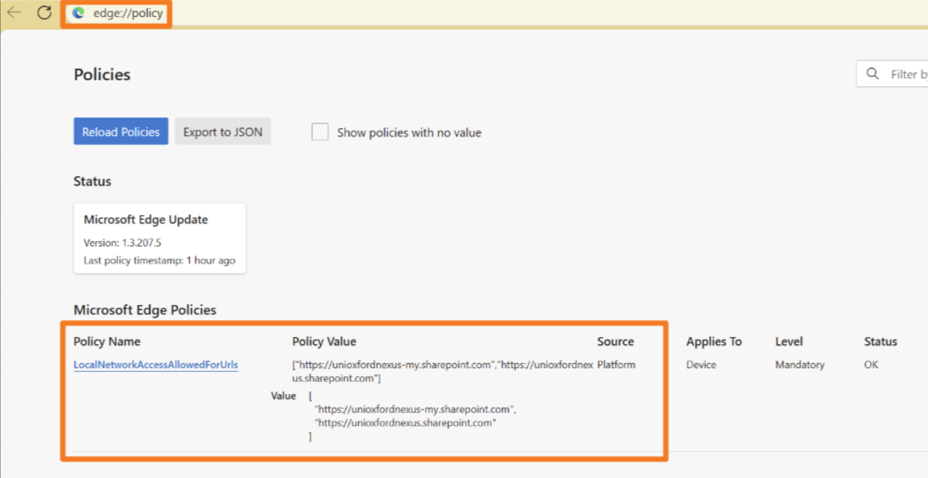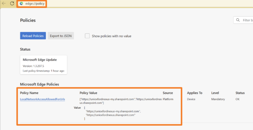 I sent a couple of screenshots to the Nexus Administrators who look after the University’s Microsoft tenancy. They say that “managed by my organisation” in the screenshots related to users syncing their OneDrive or SharePoint sites to their computer. Users can delete the policy but obviously any sync operations in OneDrive / SharePoint will stop working.